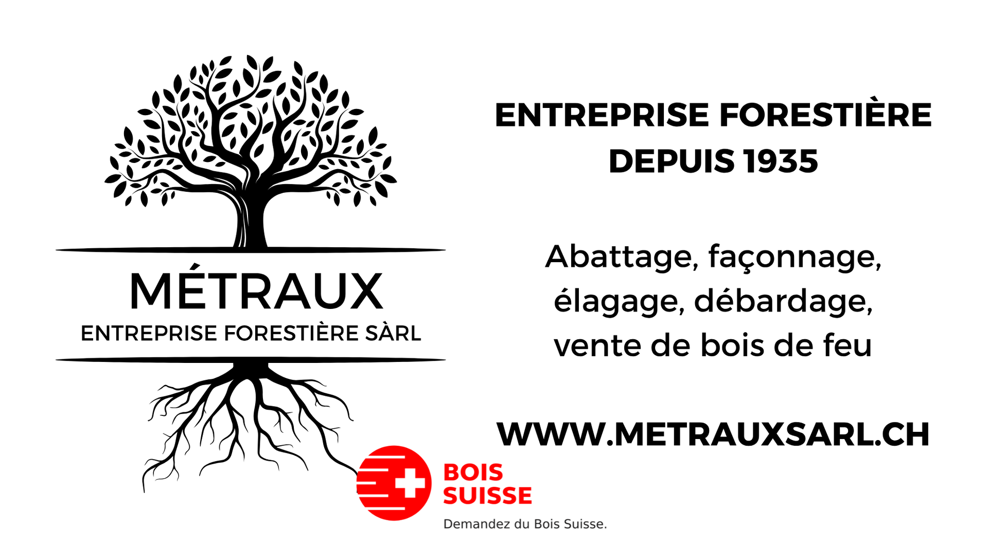 L'entreprise a été créée en 1935 par monsieur René Métraux. Les travaux sont, à l'origine comme aujourd'hui, essentiellement exécutés dans la région. L’abattage et le débardage sont alors effectués avec des chevaux, qui transportent aussi le bois jusque dans les scieries régionales. Un tracteur avec treuil est ensuite acquis dans les années 40.